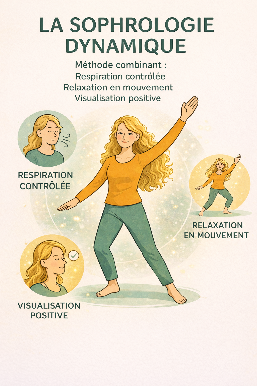 La Sophrologie Dynamique est une méthode psycho-corporelle, bienveillante et sans jugement, qui agit sur le corps, le mental et les émotions.